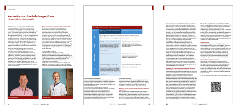 In de september-editie van PulmoScript delen Susanne Huijts en Simon van der Pol een aantal belangrijke overwegingen rondom de nieuwe leidraad vaccinaties.