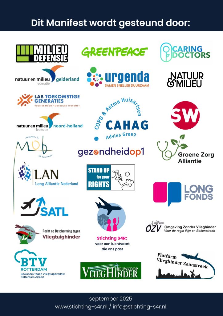Manifest Gezondheid en Luchtvaart – Overheid vroeg al 26 jaar geen advies meer. Burgers en maatschappelijke organisaties roepen op: onafhankelijk advies naar de impact van luchtvaart op gezondheid hard nodig